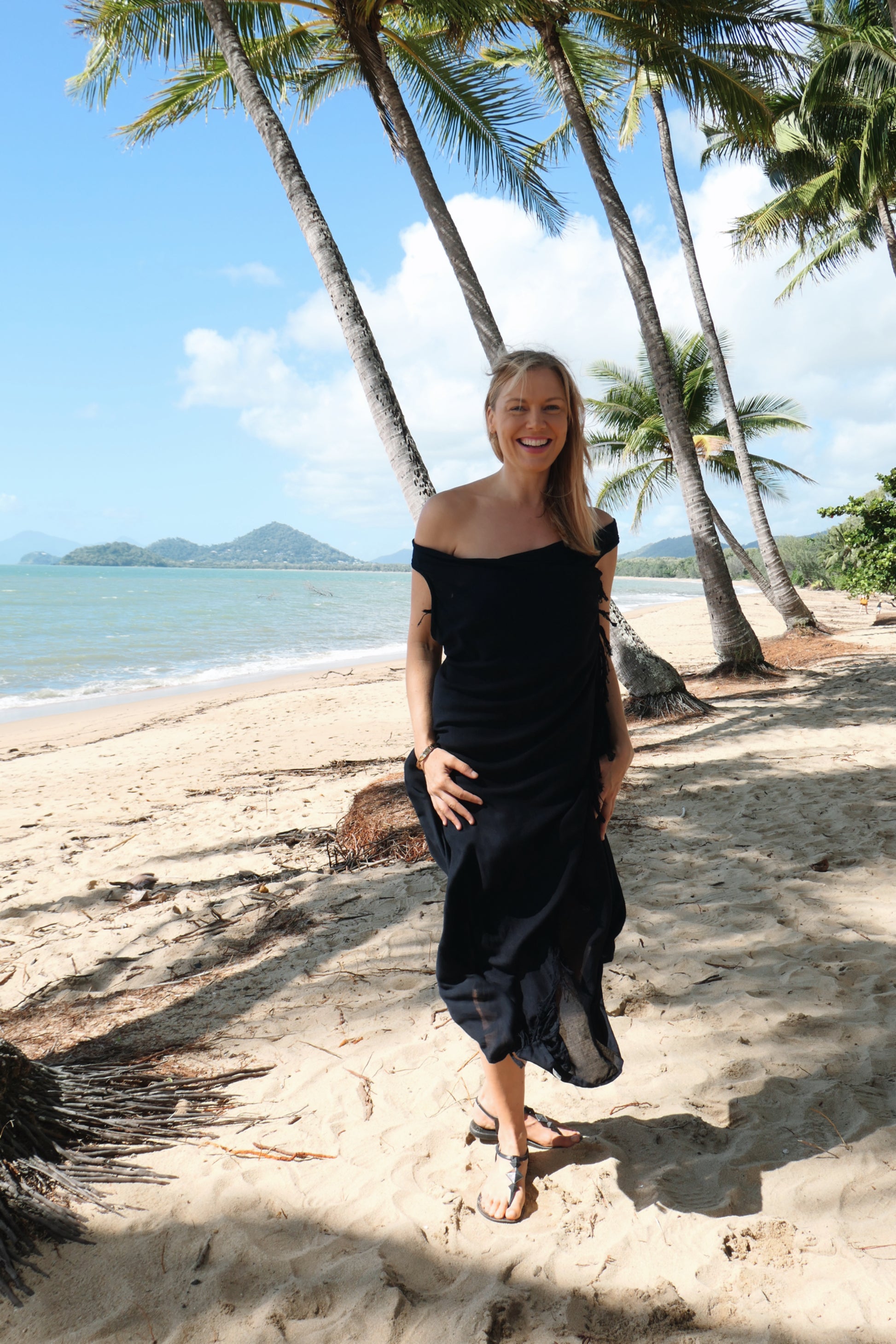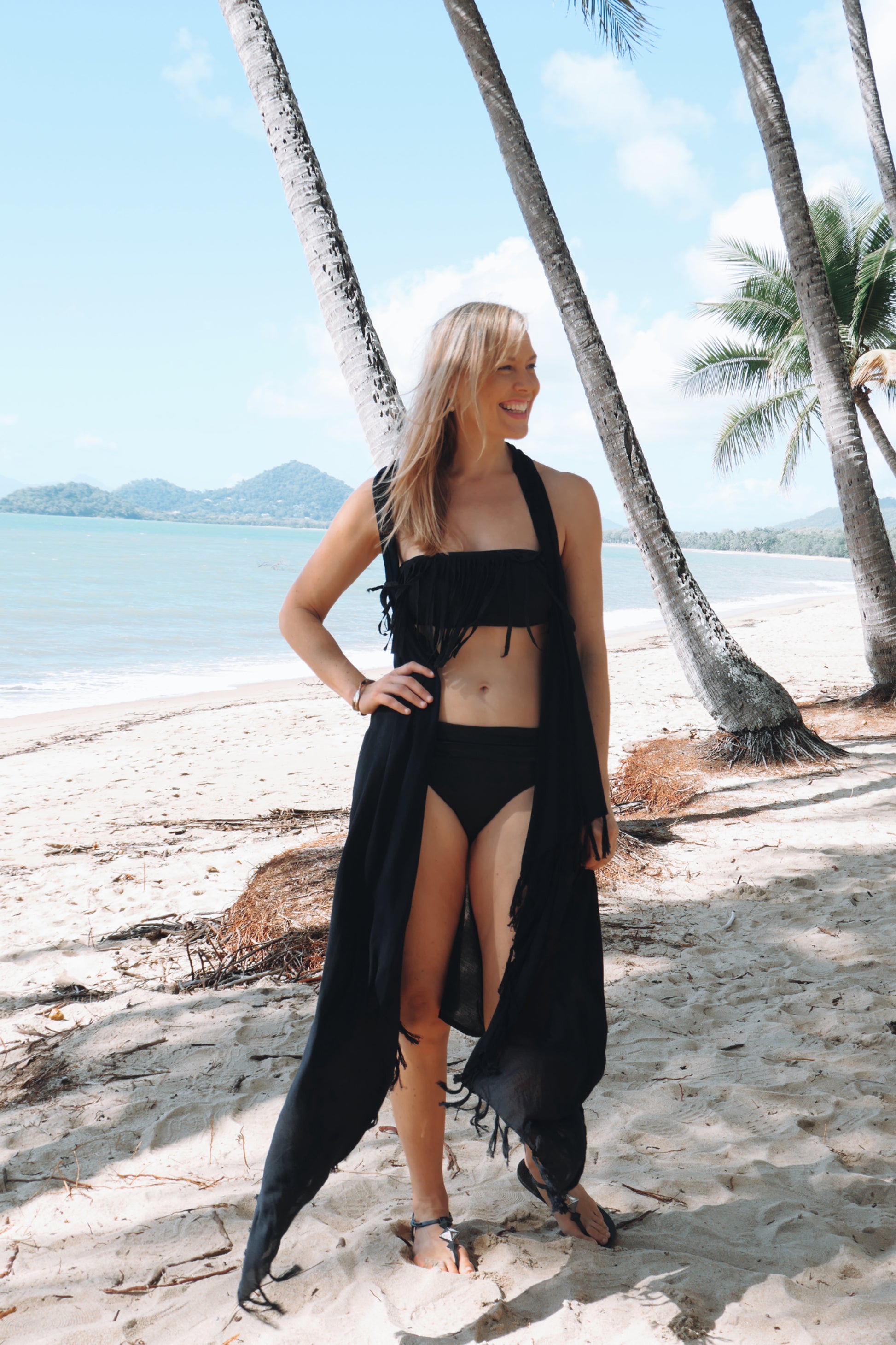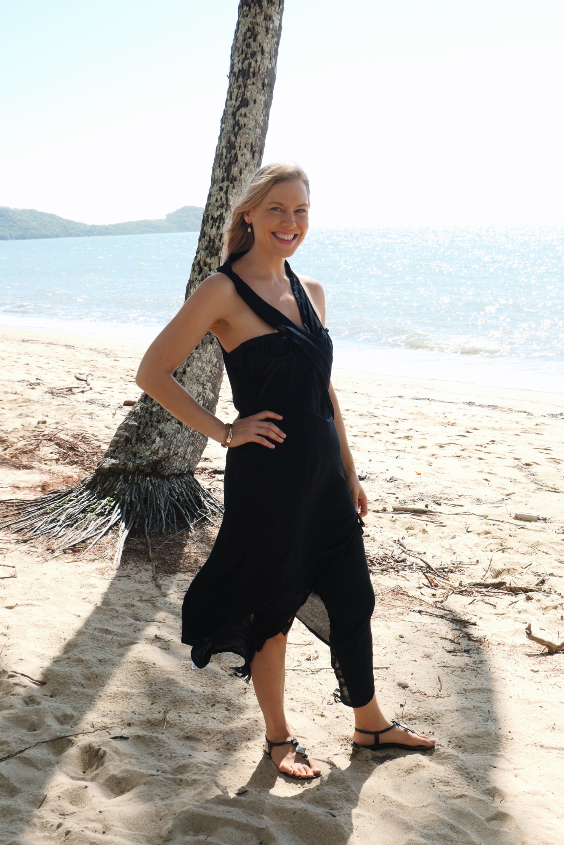 A versatile classic black sarong with a one of a kind design that offers endless ways to wear it and style it, making it the perfect addition to any summer wardrobe.