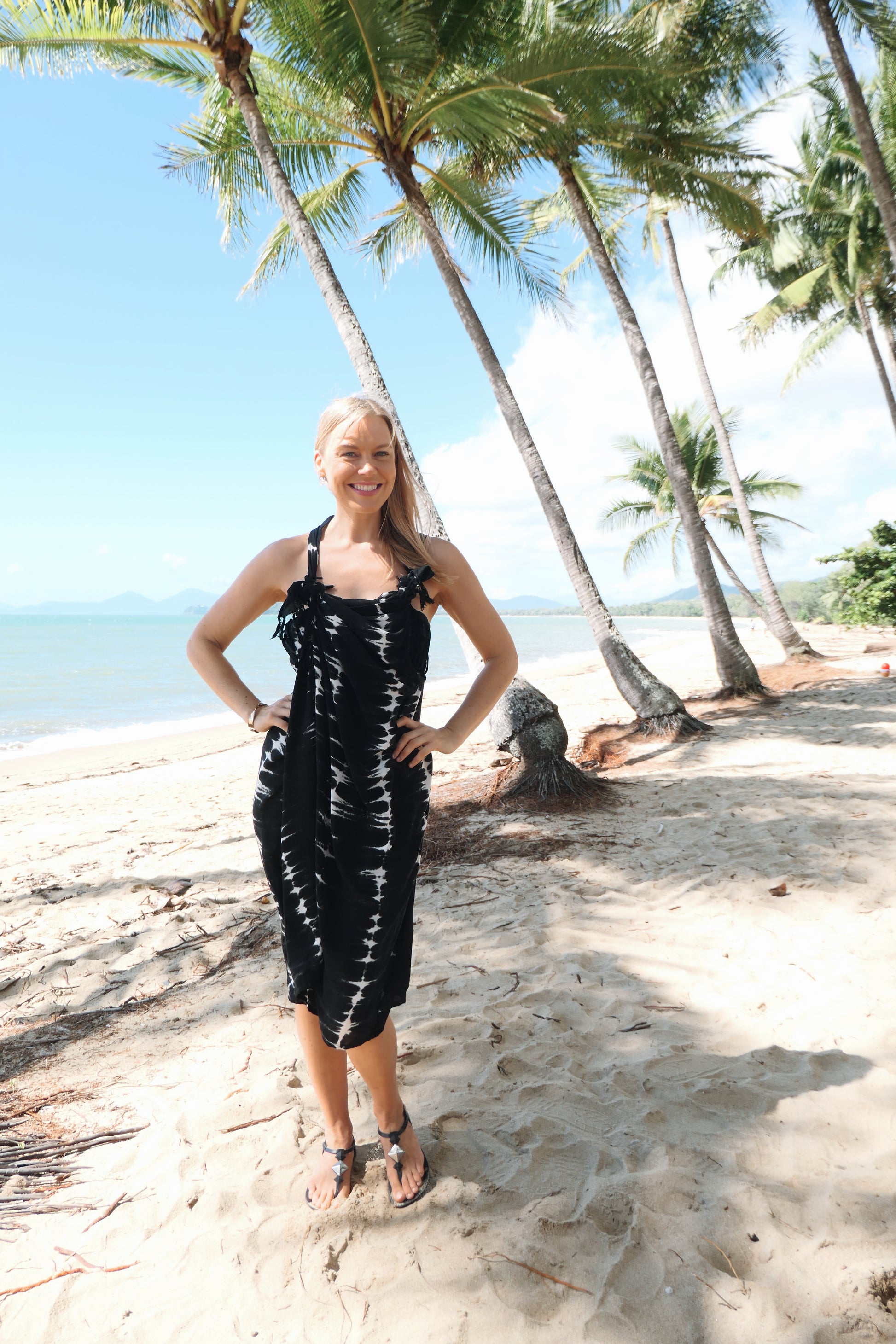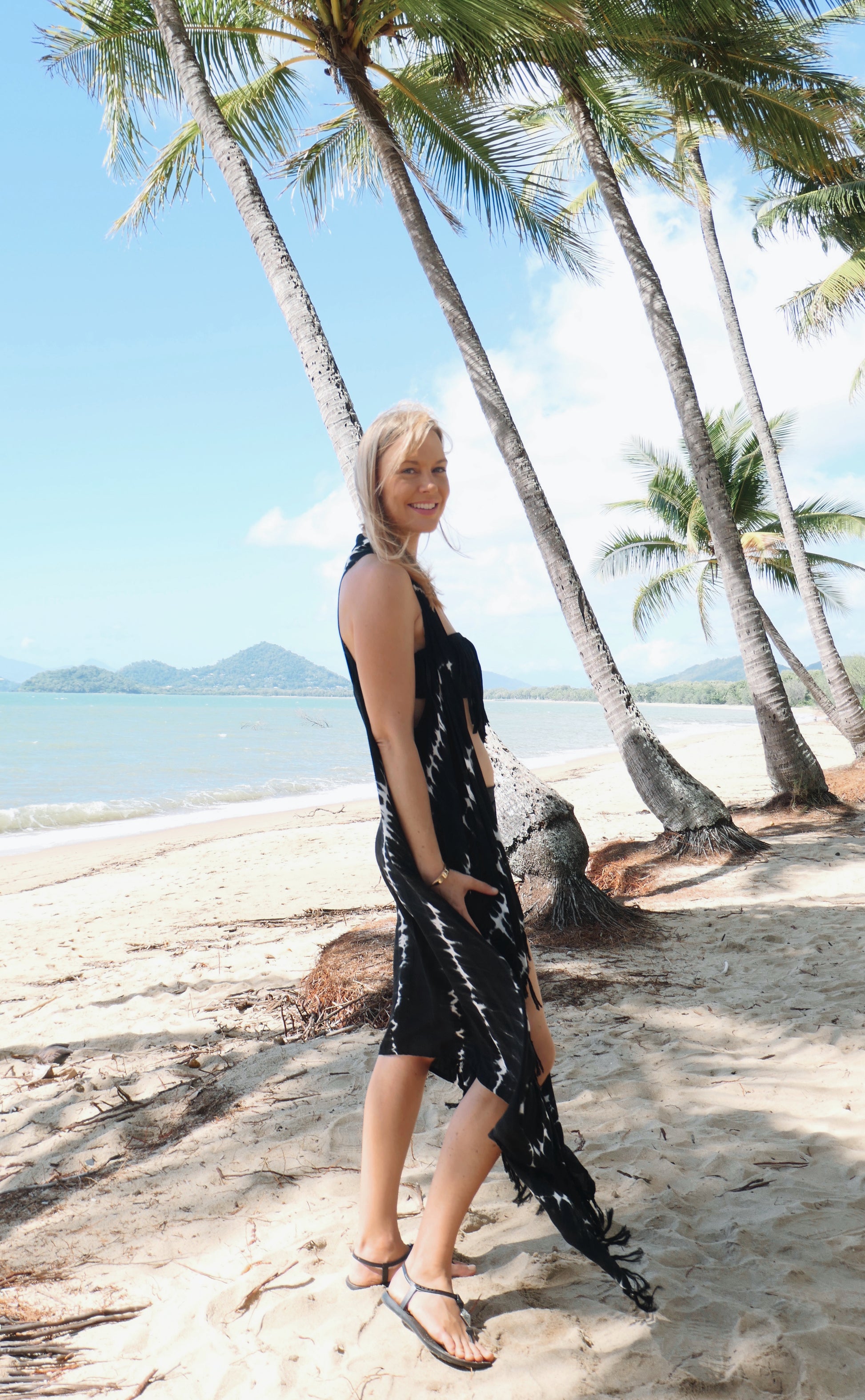 A versatile black and white sarong with a one of a kind design that offers endless ways to wear it and style it, making it the perfect addition to any summer wardrobe.