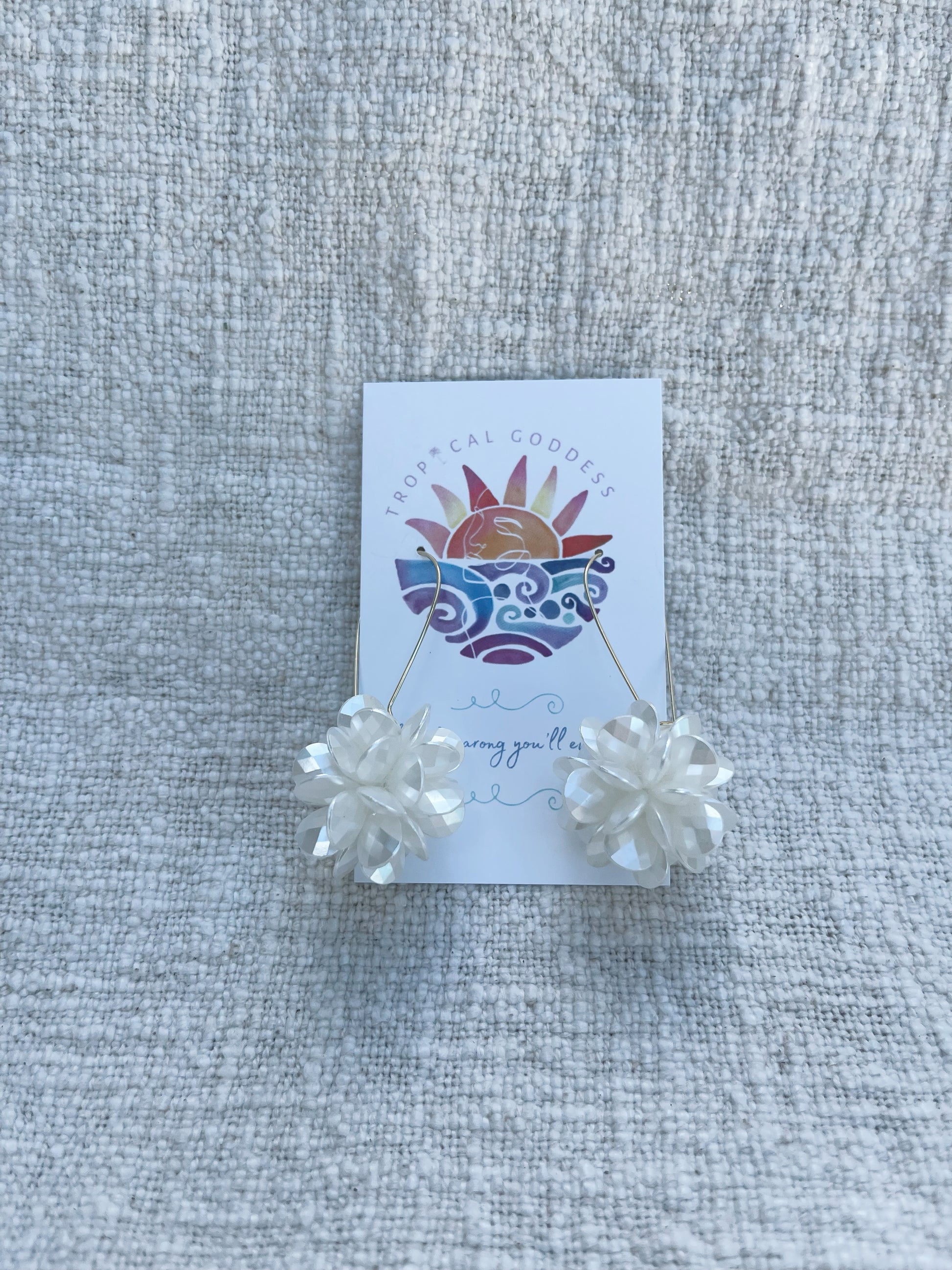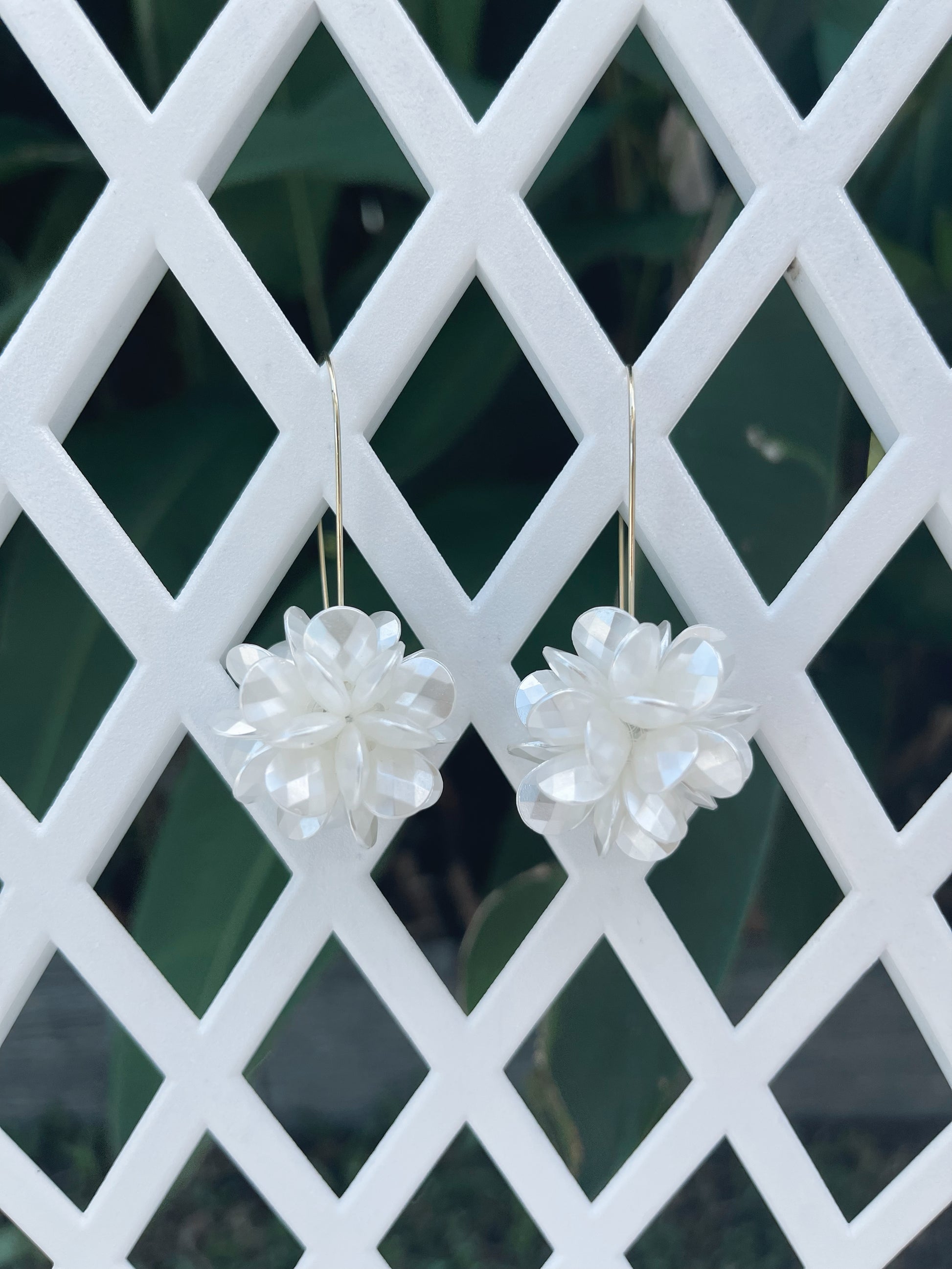 Expertly crafted with white and gold, these flower ball drop earrings are a stylish and elegant addition to any outfit. These earrings offer a sophisticated and timeless look. Elevate your style and make a statement with these stunning floral earrings. Perfect for any event. Sleek & stylish.